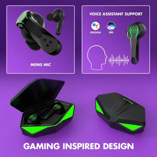 Wings Phantom Gaming TWS with 50ms Low Latency Bluetooth 5.3 Headset Bluetooth Gaming Headset